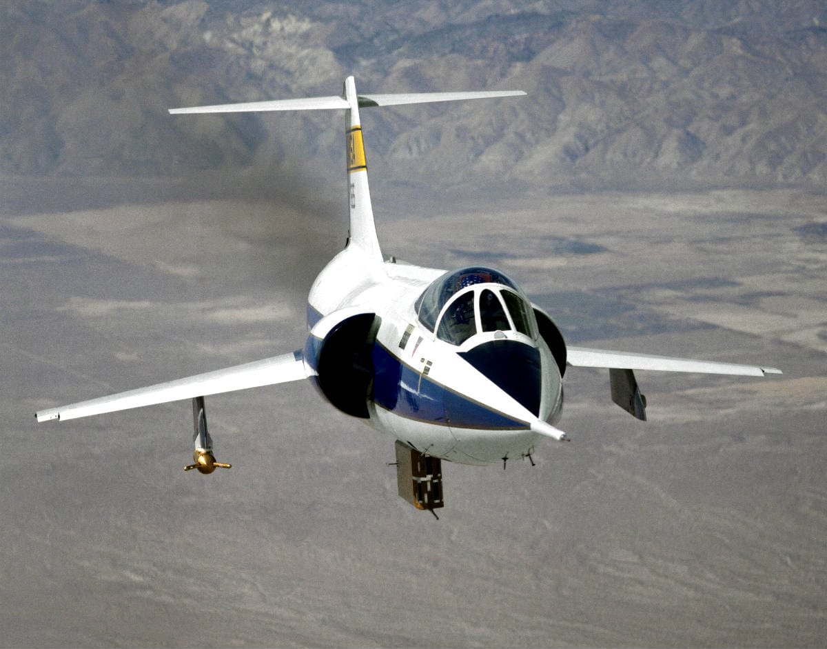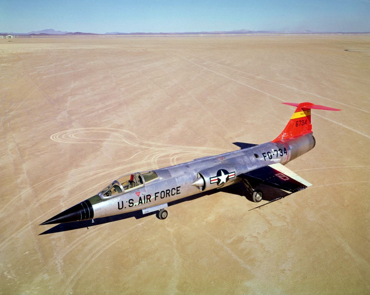 The F-104 Starfighter featured a downward-facing ejection seat, initially, which exacerbated problems for pilots traveling routinely at speeds above Mach 1.8. In one particular case, a test F-104 pilot tried to flip the bird upside down before ejecting. Unfortunately, he hit the desert before completing the role. The cause of the crash was determined to be an engine burn-out.