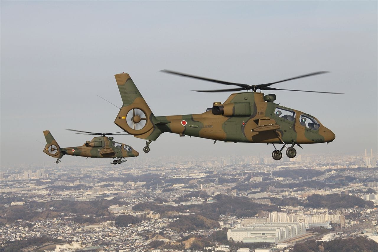 In terms of design and structure, the Japanese Ground Self-Defense Forces (JGSDF) appear to have used a very similar design as the Apache. The OH-1 Ninja is a very sleek, long helicopter powered by two twin Mitsubishi TS1-M-10 engines. It has four hard points which can be used to hold gun pods, rockets, anti-tank and anti-air missiles, or advanced sensor pods. The OH-1 Ninja is drastically underprepared for any direct combat role. However, its primary task is scout surveillance and reconnaissance. The helicopter can be launched from the back of a helicopter carrier or from a ground station. With a range of up to 342 miles, the OH-1 can effectively scout the coastline for littoral enemy vessels.