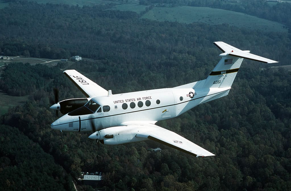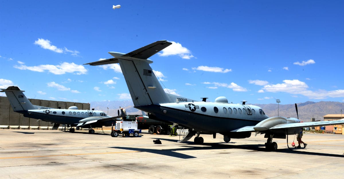 Yes, the MC-12W is a militarized version of the Hawker Beechcraft Super King Air 350ER. Instead of tourists though, these aircraft pack a complete data collection, processing, analysis and dissemination system. Liberty ISR planes are equipped with a variety of classified and ultra-advanced radar and SIGNIT sensors, as well as infrared or full color hi-definition video cameras. Almost the same intelligence gathering capabilities of a Predator drone and J-STAR surveillance aircraft, but rolled into one small and relatively cheap airframe.
