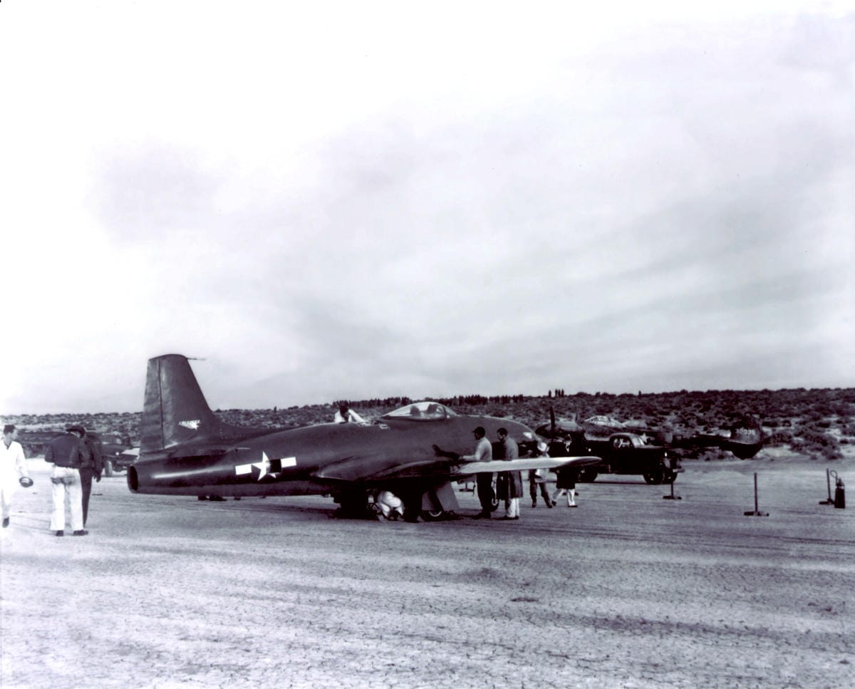 The Shooting Star couldn’t break the sound barrier on account of its straight-wing design. However, they routinely set records for long-endurance high-speed flights just under the speed of sound. In 1947, a P-80 Shooting Star made the first transcontinental nonstop jet flight across the US, a distance of 2,457 in only 4 hours and 13 minutes at an average speed of 584 mph.