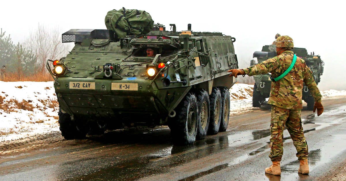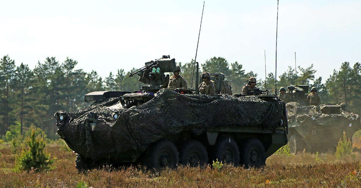 The Stryker can reach speeds of 60 mph — not bad for a 19-ton combat vehicle.